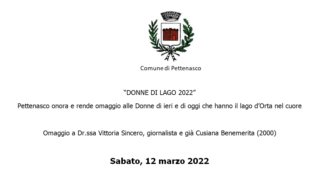 "DONNE DI LAGO 2022" Pettenasco rende omaggio alle Donne di ieri e di oggi che hanno il lago d’Orta nel cuore