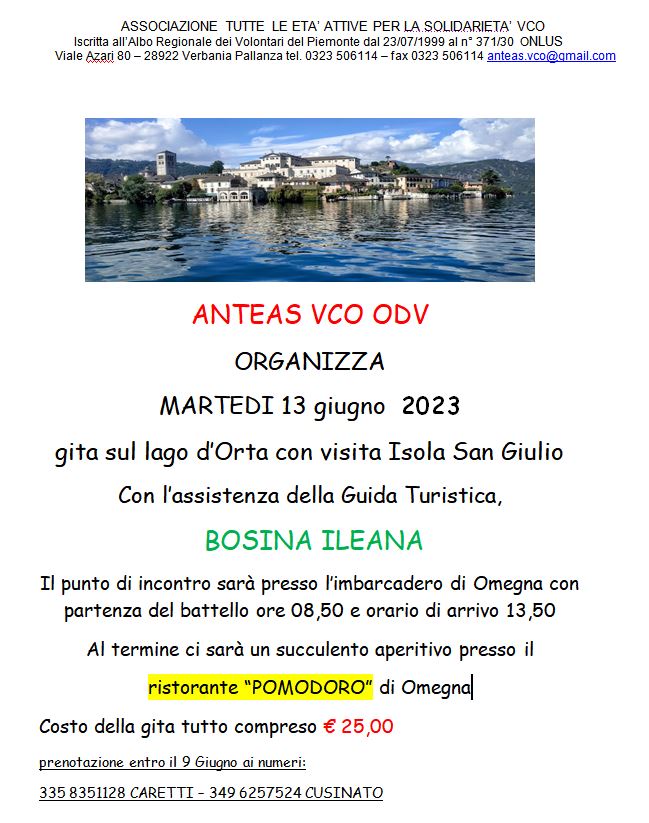 Il punto di incontro sarà presso l’imbarcadero di Omegna con partenza del battello ore 08,50 e orario di arrivo 13,50
