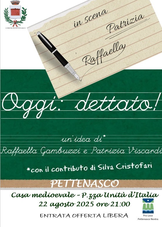 Oggi: dettato! in scena Patrizia e Raffaella Venerdì 22 Agosto ore 21.00 un nuovo, imperdibile, spettacolo!