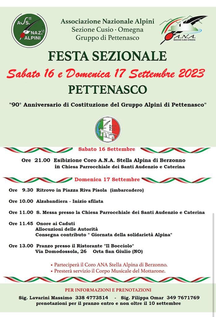 In allegato locandina con il programma degli eventi per la festa sezionale in occasione del 90° anniversario di costituzione del Gruppo Alpini di Pettenasco.