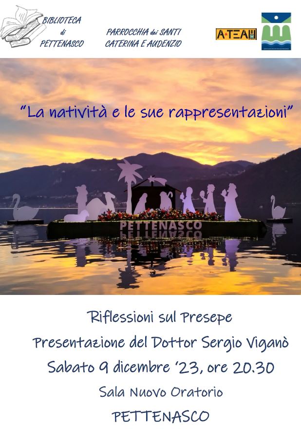 "La natività e le sue rappresentazioni" riflessioni sul Presepe, presentazione del Dr. Sergio Viganò Sabato 9 Dicembre ore 20.30 nella sala del nuovo oratorio di Pettenasco