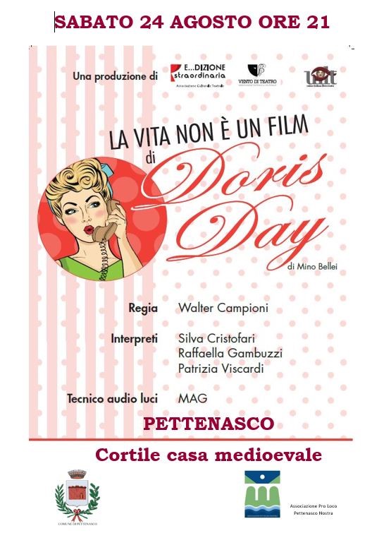 Sabato 24 agosto alle ore 21.00, unitevi a noi nel suggestivo Cortile della Casa Medioevale per assistere alla produzione teatrale "La vita non è un film di Doris Day", scritta da Mino Bellei.