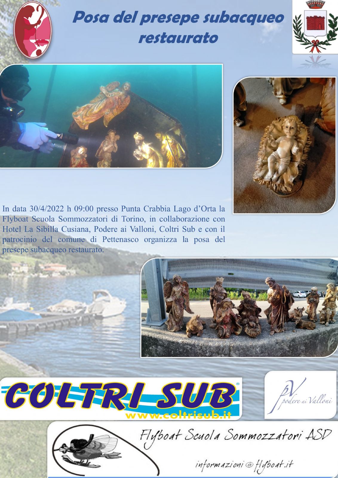 con il Patrocinio del Comune di Pettenasco (No) ed in collaborazione con Hotel Ristorante La Sibilla Cusiana, Podere ai Valloni di Boca (No), Aerotecnica COLTRI Spa, FIPSAS Biella,