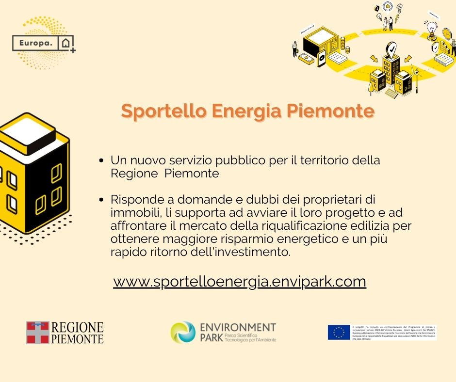 Dopo un periodo di rodaggio, lo Sportello Energia Piemonte, attivato a dicembre 2021 grazie a una collaborazione tra la Regione Piemonte ed Environment Park e ai finanziamenti del progetto Europeo EUROPA H2020, è ormai entrato a regime.