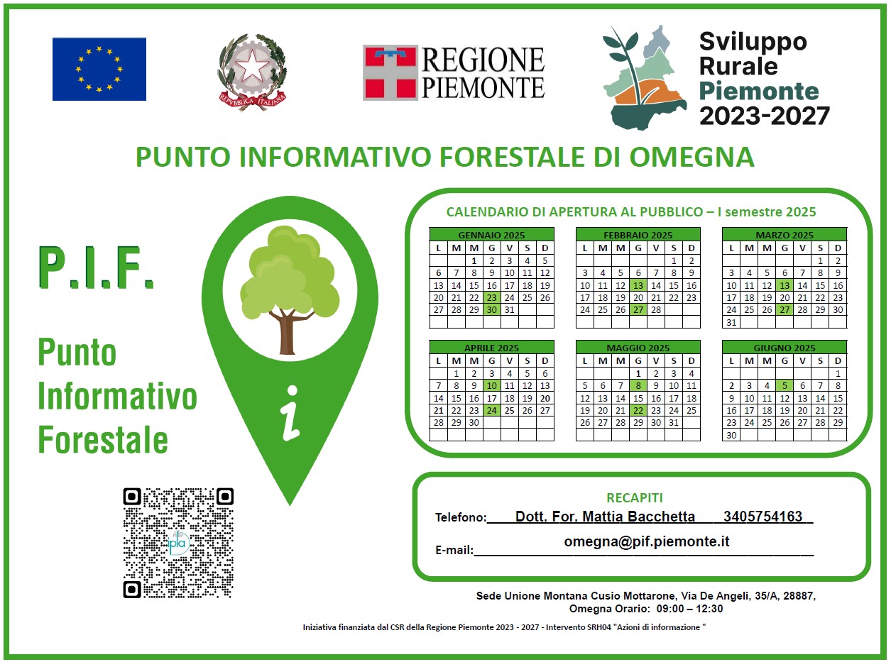 Si informa che dal mese di Gennaio 2026 è stato riaperto al pubblico il Punto Informativo Forestale di Omegna, per fornire consulenza in campo forestale ed ambientale ad utenti privati, aziende ed enti pubblici.