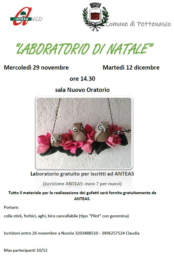 ANTEAS propone un “LABORATORIO DI NATALE” in due appuntamenti: