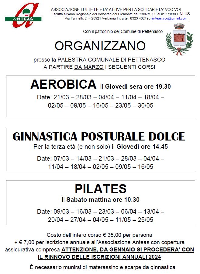 📢 Nuovi corsi di ginnastica ANTEAS con il patrocinio del Comune di Pettenasco! 🏋️♀️