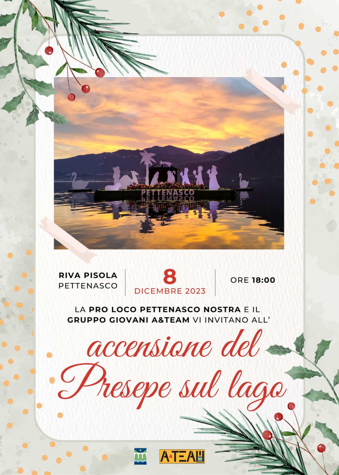 Dopo l'accensione dell'8 Dicembre la Pro Loco Pettenasco Nostra e il gruppo giovani A&TEAM invitano tutti a visitare il suggestivo e bellissimo presepe che si trova a Riva Pisola!