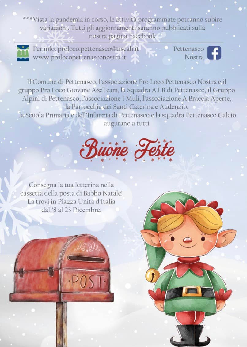 Con molto piacere vi presentiamo il programma dei festeggiamenti di Natale 2021! Un ringraziamento particolare alle Associazioni del paese che contribuiscono ogni anno a rendere speciale questo periodo!