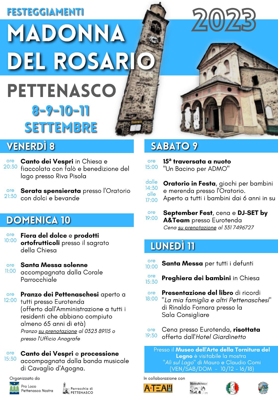 Ecco la locandina con il programma dei festeggiamenti per la Madonna del Rosario 2023 a Pettenasco.