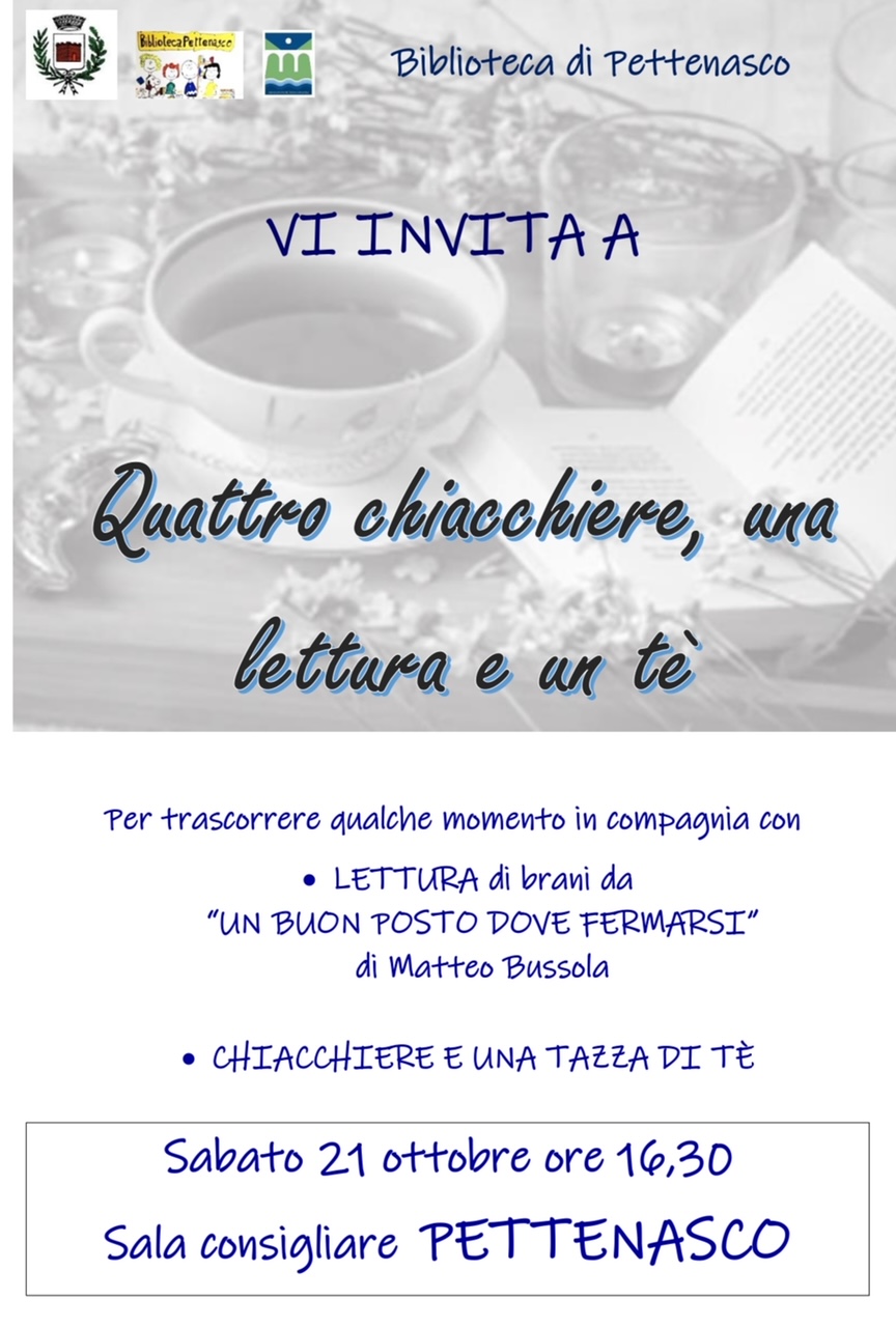 #Lettura #Condivisione #MomentiSpeciali #Pettenasco #BibliotecaPettenasco #UnBuonPostoDoveFermarsi #MatteoBussola #Tè #AppuntamentoImperdibile