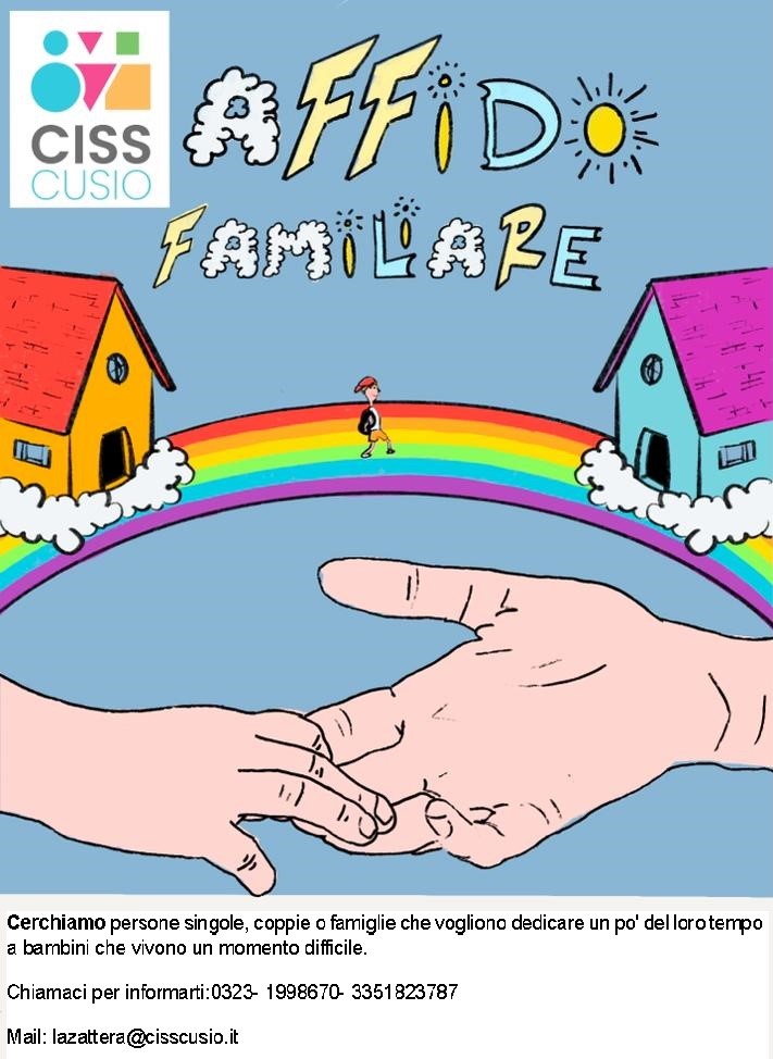 Pubblichiamo in allegato una scheda informativa relativa alla campagna "Cusio solidale", promossa dal CISS CUSIO per sensibilizzare la Comunità sul tema dell'affido familiare e specificamente l'affido dei minori stranieri non accompagnati.